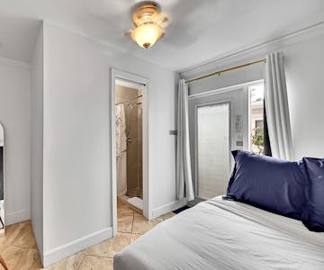The Inn On The Drive is an Adult-Only, Clothing-Optional LGBTQ Resort surrounded by lush tropical landscaping, tall palms, and a patterned paver driveway. At the heart of the property, three sparkling pools, a soothing hot tub, and a private workout area are framed by a spacious tiled patio with lounge chairs, stylish daybeds, and outdoor dining tables - creating the ultimate tropical oasis for relaxation, leisure, and social enjoyment.