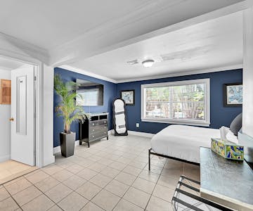 The Inn On The Drive is an Adult-Only, Clothing-Optional LGBTQ Resort surrounded by lush tropical landscaping, tall palms, and a patterned paver driveway. At the heart of the property, three sparkling pools, a soothing hot tub, and a private workout area are framed by a spacious tiled patio with lounge chairs, stylish daybeds, and outdoor dining tables - creating the ultimate tropical oasis for relaxation, leisure, and social enjoyment.